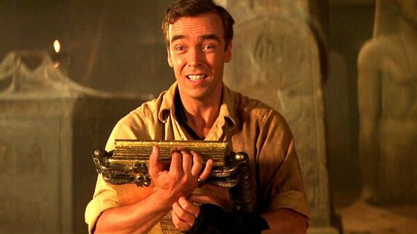 Imhotep. The perfect combo of dead and juicy. The original underground gothic boyfriend. Moist. Rehydrated. Devoted beyond death. Willing to dismantle civilisation for love. A walking dissertation on obsession & grief, alongside the limitless power of the cuffs, cloak, and loincloth combo. He taught us that villains could be hot, that longing could be monstrous, that devotion could be terrifying & beautiful & deeply queer-coded, that desire could cross time & flesh & morality, and somewhere in there many of us learned that attraction does not always arrive wrapped in safety, sometimes it arrives wrapped in tragedy and drama and ancient curses, and we say yes anyway. Cos why not? We’ve got more than enough time.